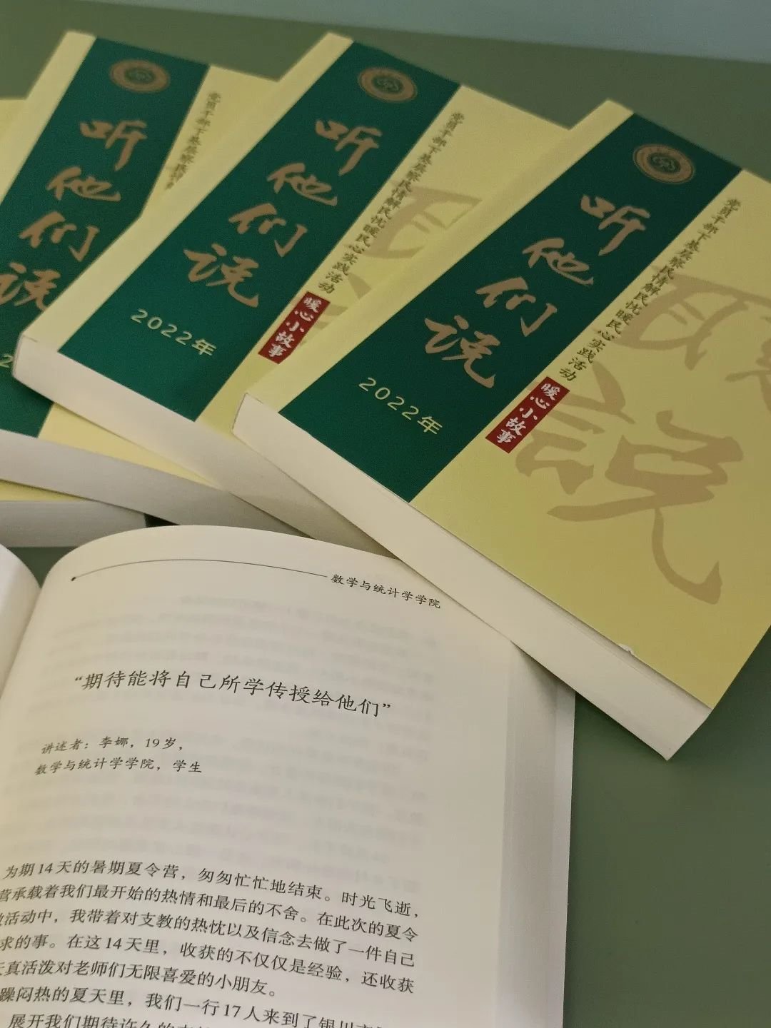 2022年底,学校党委宣传部汇集了广大师生、校友在实践活动中亲身经历的或发生在身边的真实感人故事,编印《听他们说》一书。