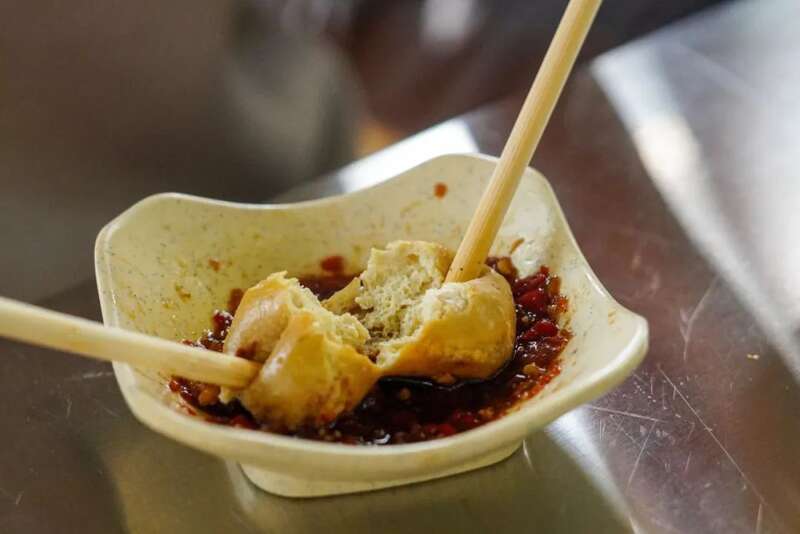 往红彤彤、黑乎乎的蘸水碟里一蘸