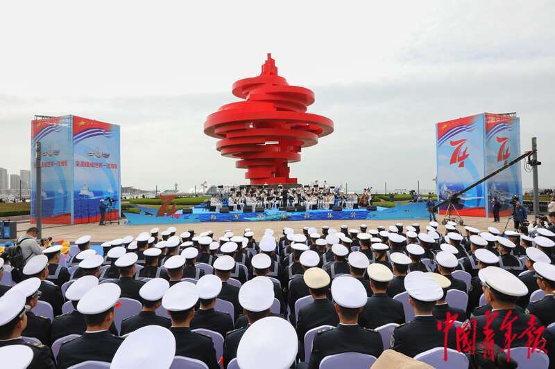 中国青年报客户端青岛4月21日电(中青报·中青网记者 李建泉 王裴楠)作为2023年人民海军成立纪念日系列宣传教育活动之一,海军军乐音乐会今天在青岛五四广场举行。