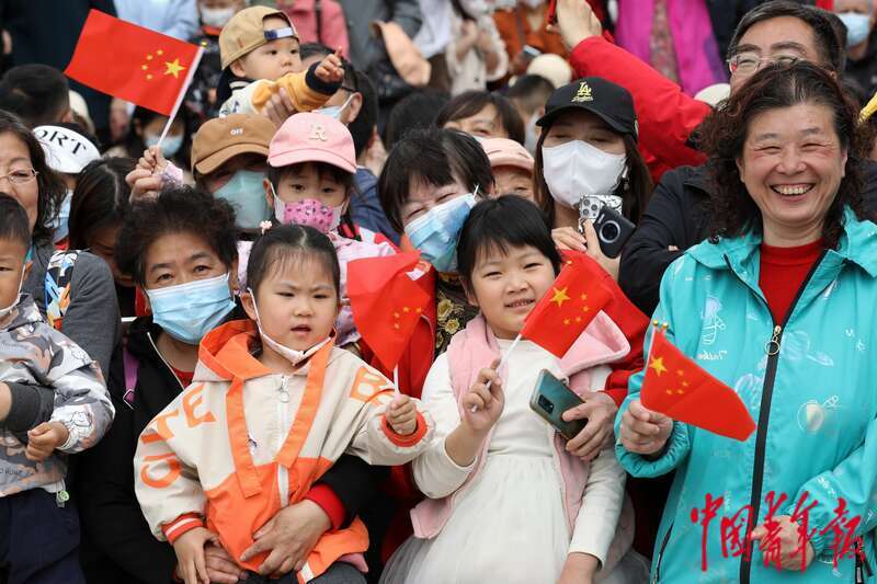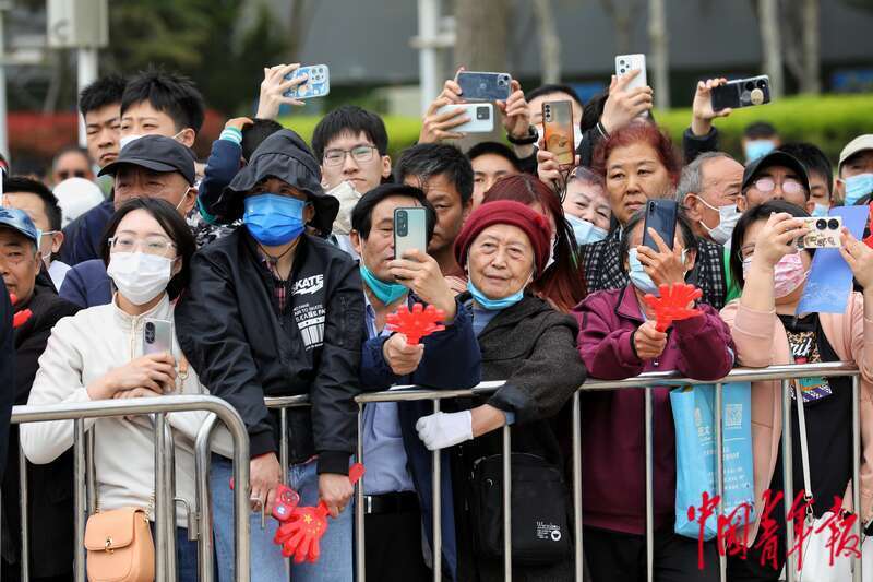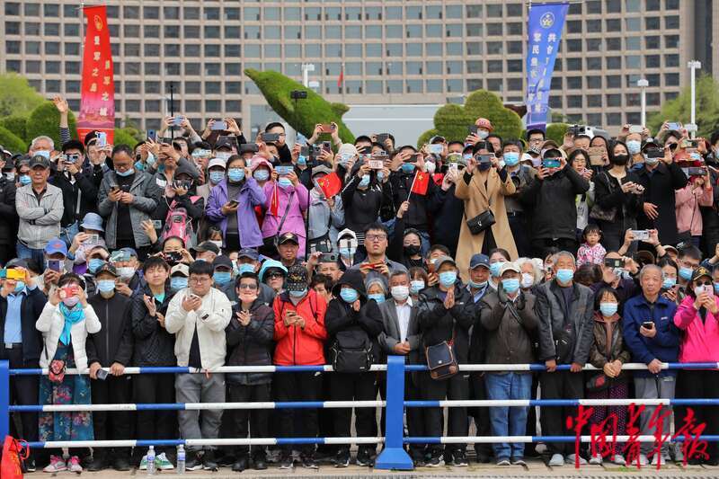 4月21日,山东青岛五四广场,海军军乐音乐会吸引了许多市民游客前来观看。中青报·中青网记者 李建泉/摄