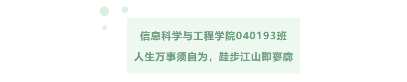 信息科学与工程学院2019级040193班共33人,其中中共正式党员10名,预备党员6名。班级平均绩点3.57,绩点3.9及以上有11人。班级为 左惟书记直接联系班级 ,班级坚持贯彻班团一体化思想,班级成员组织开展的“四史灯谜”,“共读一本书”等活动均受到了校内外人士的广泛好评。