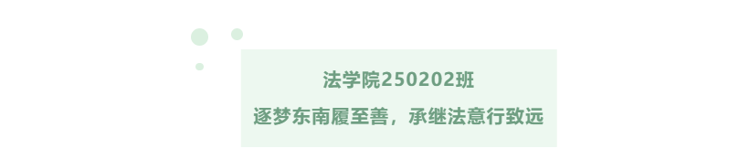 法学院250202班共38人,其中预备党员7人,入党积极分子25人。 班级学风优良,全班学年平均绩点为3.64,年级前五名人数占比为80%,班级绩点排名为 年级第一 。班级积极进取,曾获评 2022年度优秀主题团日活动 、 校级优秀团支部 等奖项,经学院遴选并推荐参加东南大学优秀志愿活动组织奖、江苏省百强千优团支部评选。