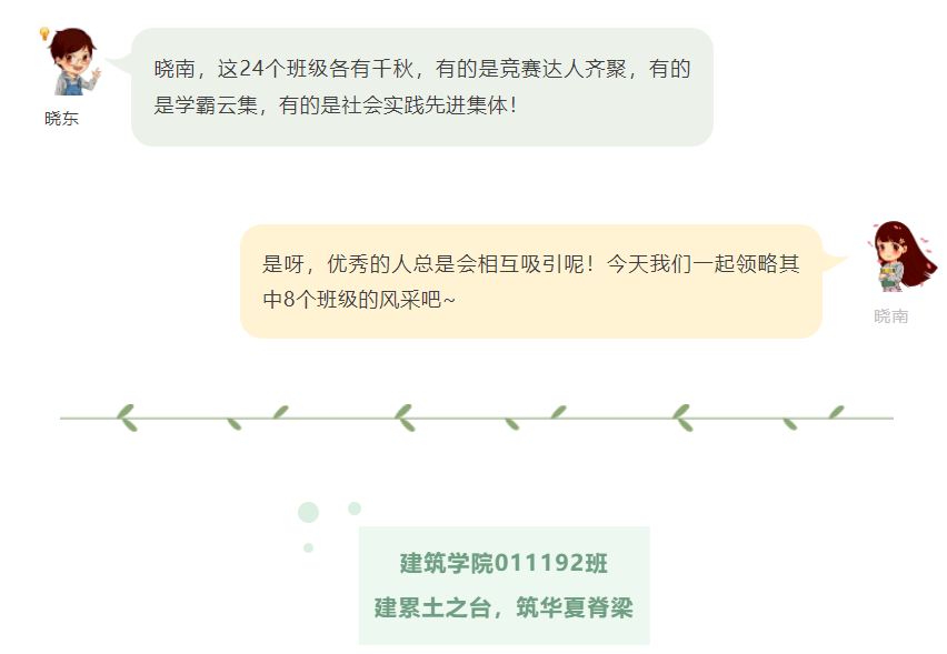 建筑学院011192班共有28人,其中党员6人,入党积极分子8人。 班级4人位列专业前五,平均绩点3.68, 位列专业第一 。累计28名同学参加34项社会实践项目,其中“追光·虚拟党史博物馆”项目获得中国青年报社颁发的 全国最佳实践团队 (全国仅十项) 。011192班荣获东南大学 优良学风班 , 国旗团支部 。