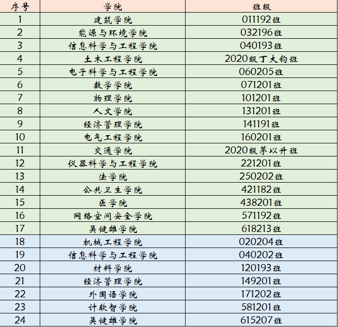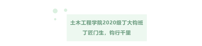 土木工程学院2020级丁大钧班共33人,中共党员(含预备党员)10人。 班级均分位列专业第一 ,专业排名前30席占24位 。班级承揽抗震减灾科普教育基地等多项省级志愿实践项目,事迹被荔枝网、云南文明网等多家媒体报道。班级被评为 东南大学五四红旗团支部 、 东南大学优秀团支部 ,荣获 东南大学首届心理主题班会大赛一等奖 。