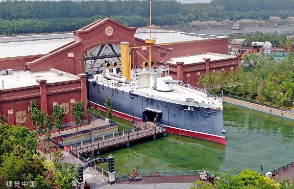 2023年4月20日,江苏淮安,方特东方欲晓主题公园内的沉浸式红色研学互动体验项目“海上战争‘致远 致远’”。