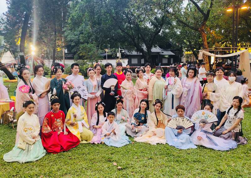 身着传统服饰的游人游园踏青。翁敏怡/摄