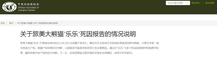旅美大熊猫“乐乐”于美国当地时间2023年2月1日凌晨不幸死亡。随后中方立即成立专家组赴美国孟菲斯动物园,与美方专家一起对其进行尸检。根据尸检结果初步判断,心脏病变可能是导致其死亡的主要原因。通过对“乐乐”70多个样品的病理学和病原学检查,最终结果支持尸检的初步判断。下一步,经检疫查验合格并做好生物安全保障后,将用于科学研究。