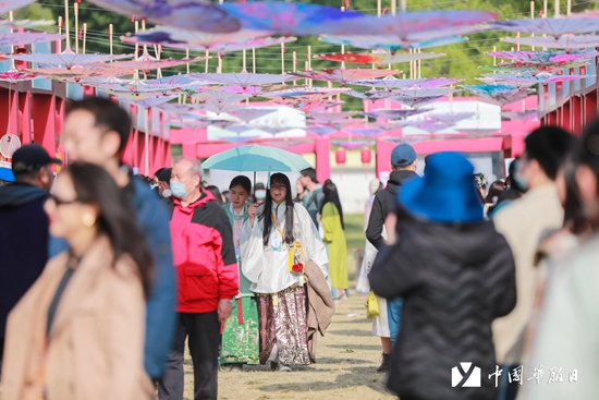 4月22日,适逢农历三月初三“上巳节”。由共青团中央宣传部指导,中国青少年新媒体协会、中国青年报社、团北京市委等联合主办的第五届“中国华服日”活动,在北京主会场和山东、江苏、湖南等三地分会场举办,吸引上万名青年华服爱好者体验游览。