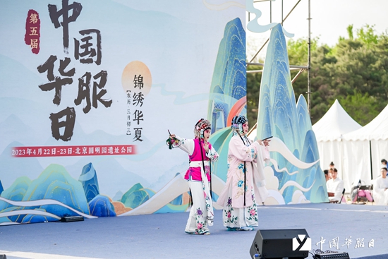 第五届“中国华服日”主会场,华服爱好者在进行昆曲表演。