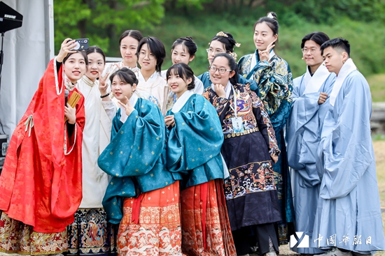 4月22日,在位于北京圆明园遗址公园的第五届“中国华服日”主会场,华服爱好者正在自拍。(本文图片均由受访者提供)