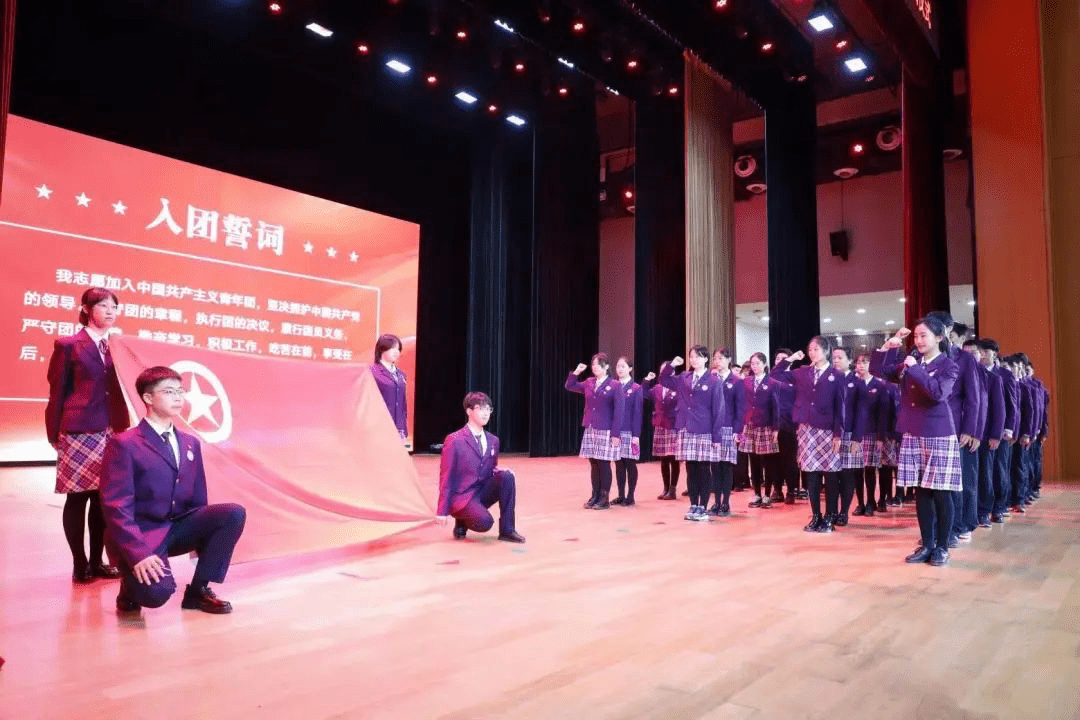 入团仪式在合唱团精心准备的《如愿》与《灯火里的中国》节目中拉开帷幕。南开中学滨海生态城学校校领导宣布新团员名单,与会领导和嘉宾为新团员颁发团章、佩戴团徽徽章,新团员面向团旗进行了庄重的入团宣誓,老团员重温入团誓词。