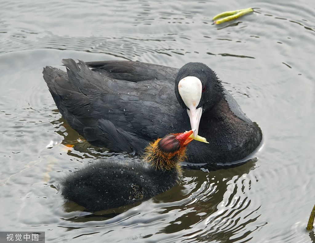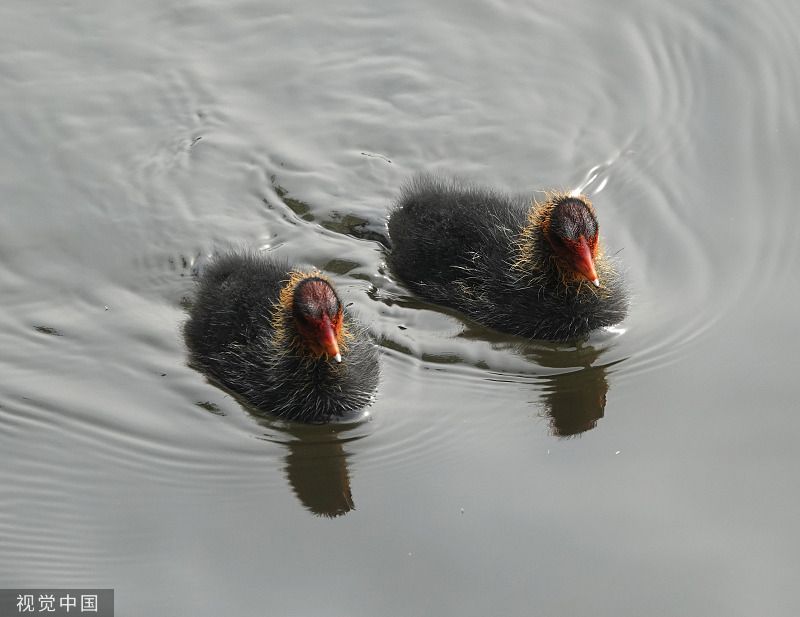 4月27日,北京圆明园景区,网红黑天鹅、凤头䴙䴘、大雁、白骨顶鸡等宝宝陆续出生,它们在各自爸、妈的带领下戏水觅食、踏青游玩,趣味盎然,温馨可爱,成为春日一道美丽的风景。