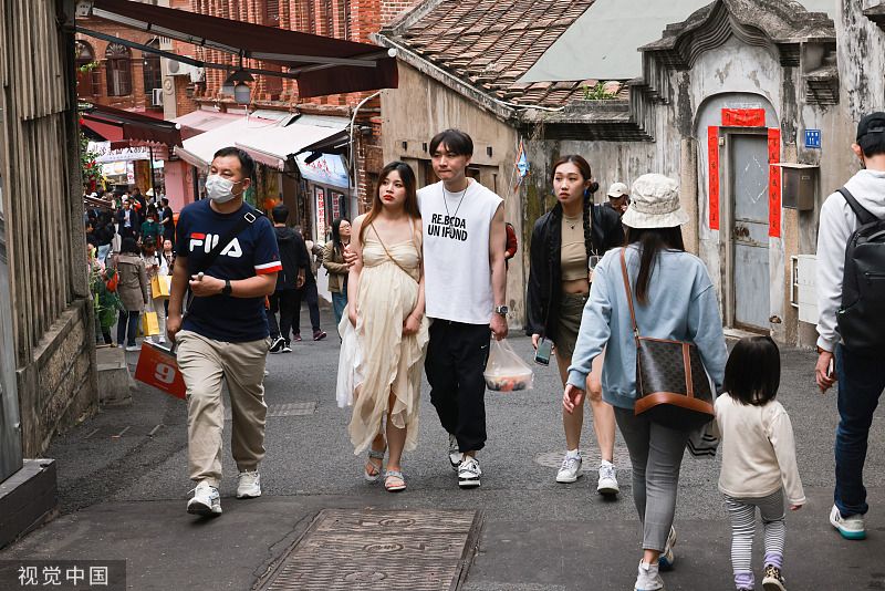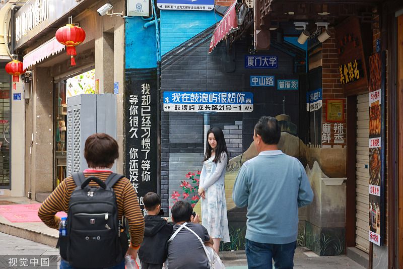 4月26日,厦门,鼓浪屿的小巷富有人文色彩,游客游玩、观光。
