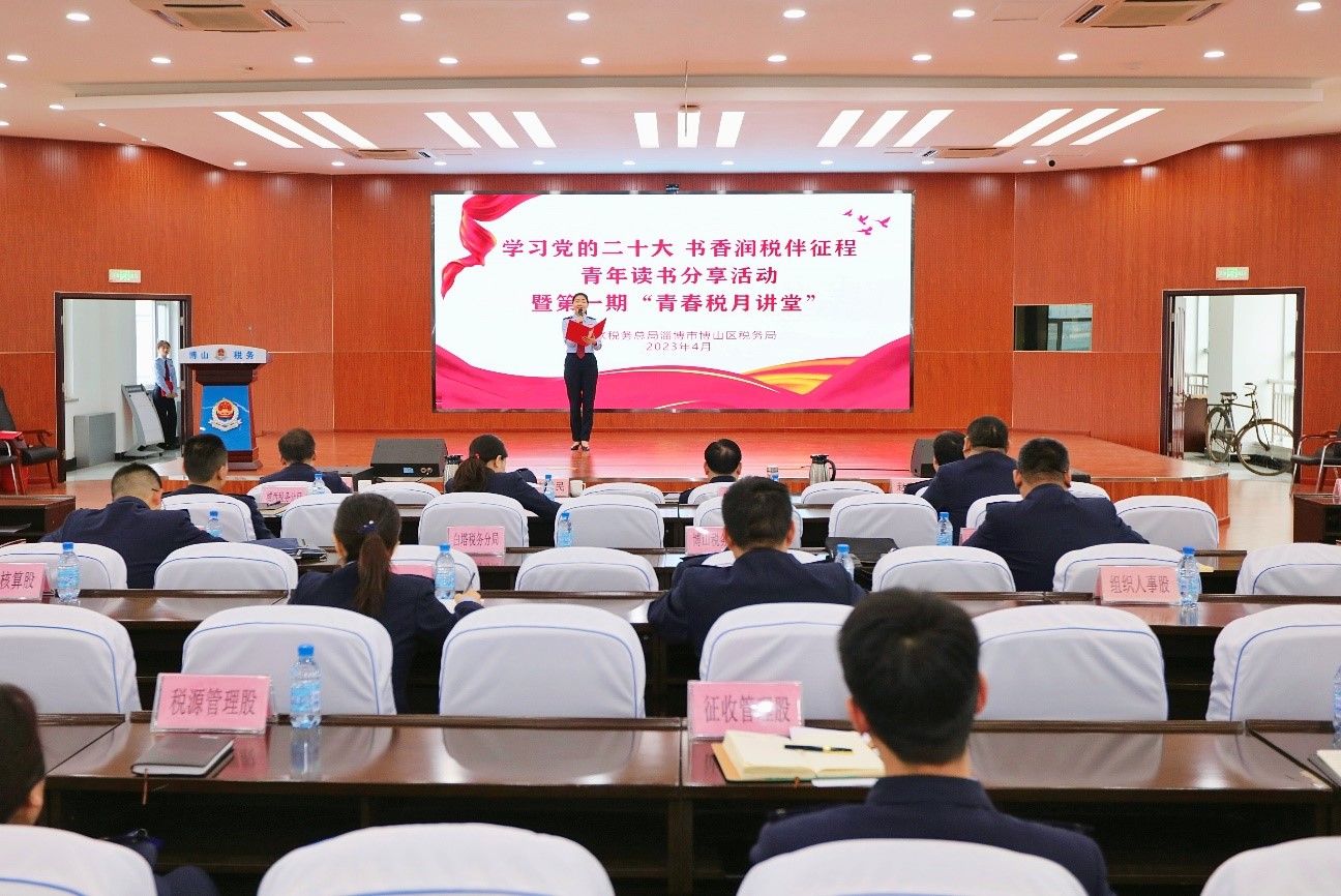 在“学习党的二十大 书香润税伴征程”青年读书分享活动暨第一期“青春税月讲堂”活动中,税务青年干部们用青春“好声音”传承经典,用青春“新方式”演绎经典,通过微党课、演讲、诗朗诵、情景剧等新颖形式与大家分享了《觉醒年代》《我的父亲焦裕禄》《时代楷模——黄文秀》等书籍中的经典内容,青年干部们“以书会友”,畅谈读书体会,分享阅读感悟。
