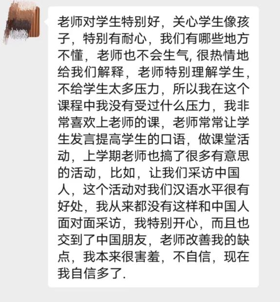 “除了培养知华友华的国际人才,为同学们提供价值观和方法论上的指导和支持是非常必要的。”对国际汉语教师来说,给国际学生上汉语课,上中国文化课,每堂课都需要讲好中国故事,传播中国声音,树立一个可信、可爱、可敬的中国形象。