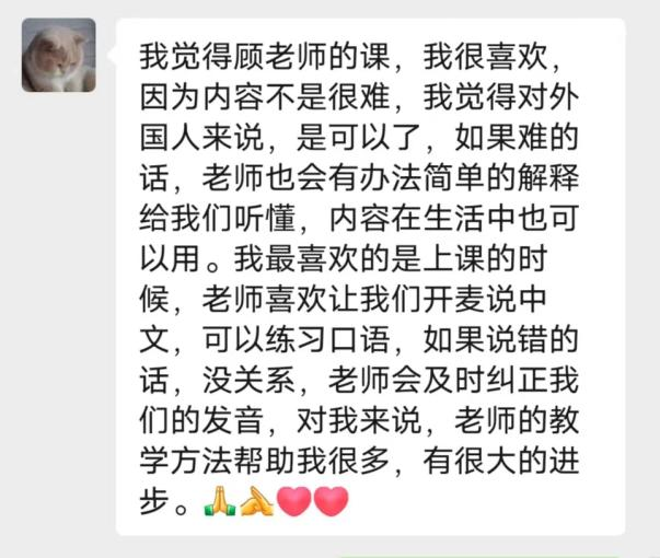 本科生对顾老师听说课程的反馈