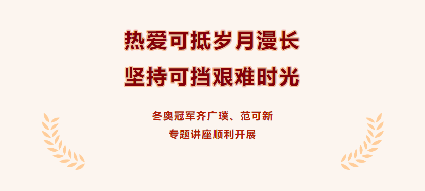 习近平总书记强调: “体育是提高人民健康水平的重要手段,也是实现中国梦的重要内容,能为中华民族伟大复兴提供凝心聚气的强大精神力量。” 热情与执着是两位奥运冠军成功的基石,热爱可抵岁月漫长,坚持可挡艰难时光。身在新时代,我们应当以伟大的冬奥精神为引,以两位奥运冠军为榜样,在伟大复兴的浪潮中劈波斩浪,奋力谱写新时代的青春华章!