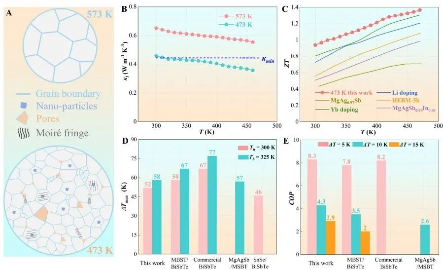B:超细晶和多孔结构对MgAgSb晶格热导率的降低效果