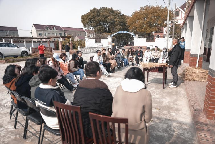 在潘石村的亲身劳动经历,给予复旦师生用脚步丈量乡村土地的机会。师生们在向当地村民学习潘石村的传统民间艺术“草编”的制作过程后,运用皮筋、画笔、纸板和乡间常见的稻草,创造出草帽、草裙等作品。在与稻草的亲密接触中,同学们体会到乡村劳动艺术的趣味所在。在村民的指导下,同学们还自己动手包水饺,体会到粮食的来之不易。