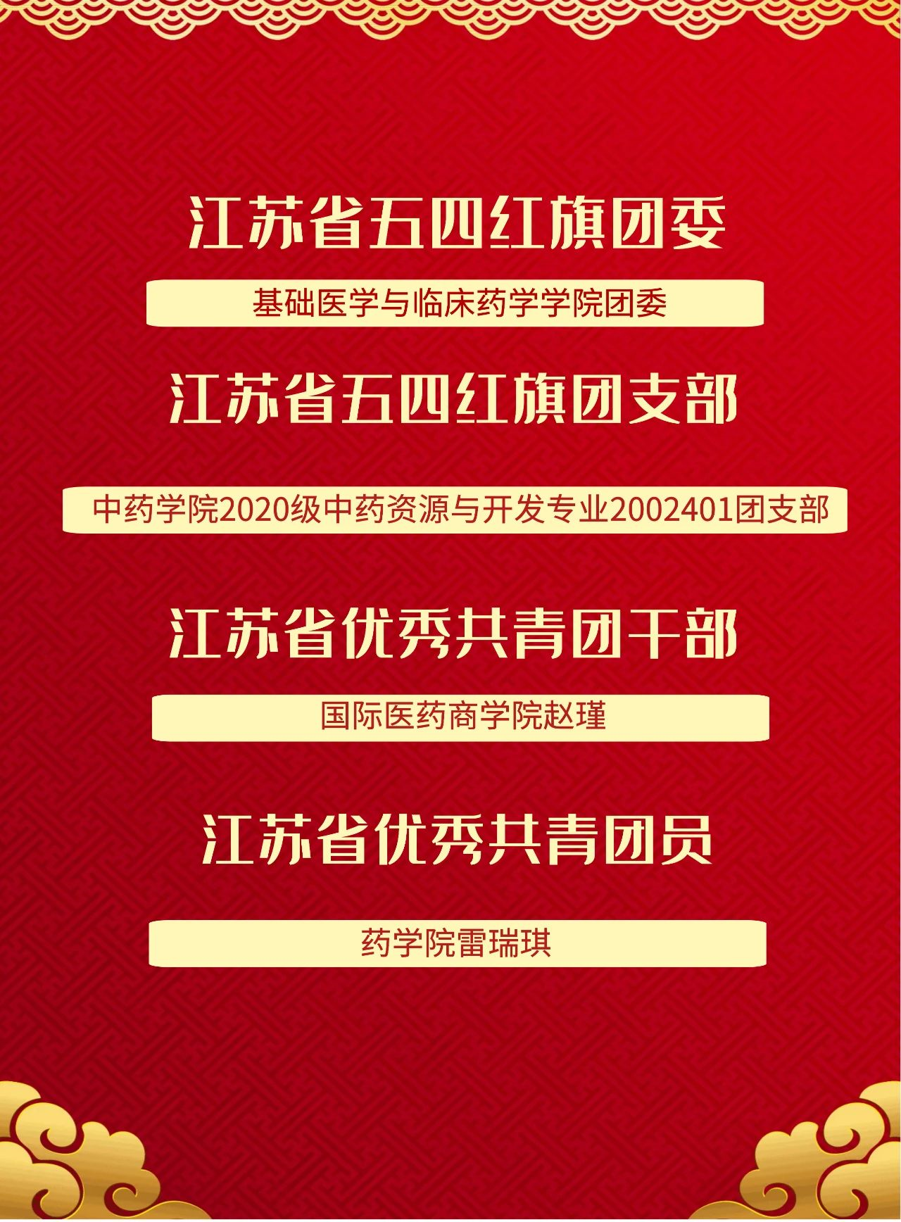 近日,共青团江苏省委发布《关于表彰江苏省五四红旗团委(团支部)、江苏省优秀共青团员、江苏省优秀共青团干部的决定》,中国药科大学青年师生、青年集体获得多项荣誉。