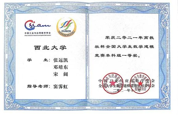摘得全国大学生数学建模竞赛一等奖等多个奖项