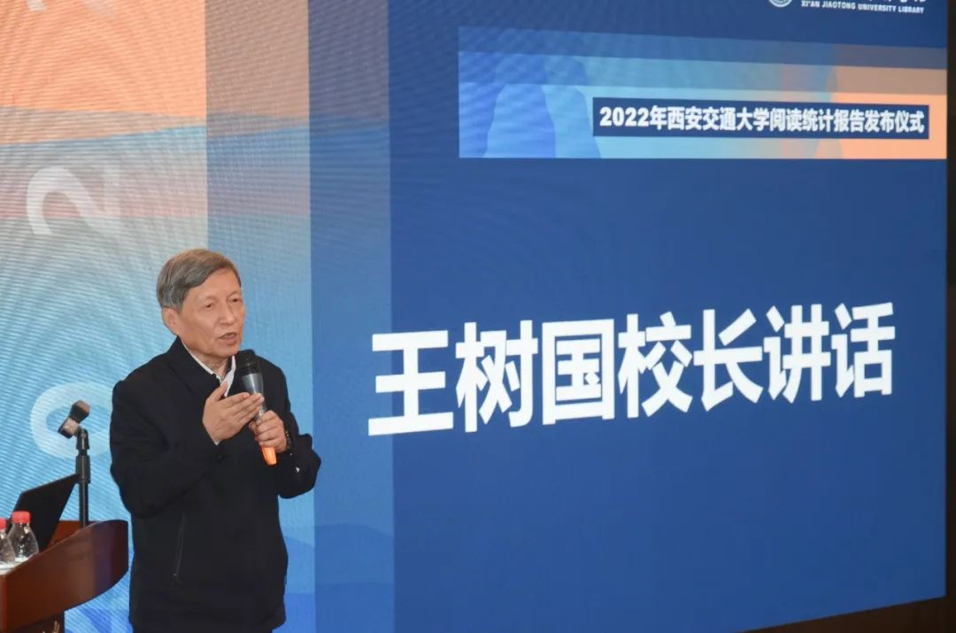 4月23日上午,西安交通大学举行2022年度阅读统计报告发布仪式。校长王树国出席发布仪式并讲话,现场为 “荐书达人”“借阅达人”“泡馆达人”和微书信大赛获奖代表颁发了奖品和荣誉证书。