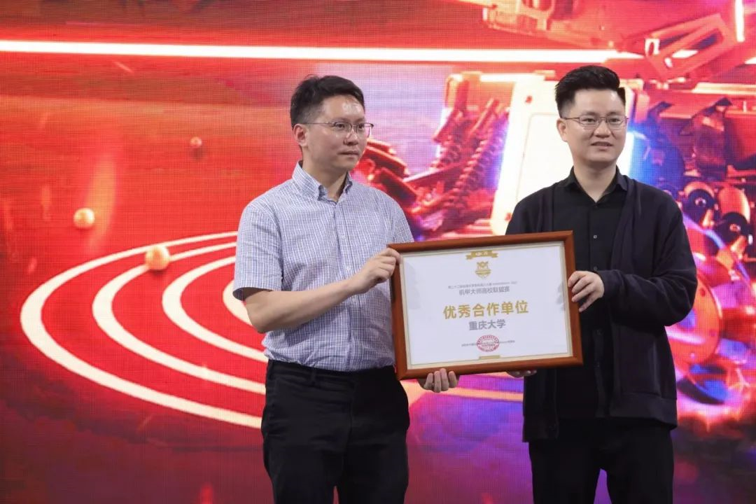 随后,李卓泉代表赛委会,向重庆大学颁发优秀合作单位奖,重庆大学本科生院学生创新管理办公室主任张翔上台领奖。