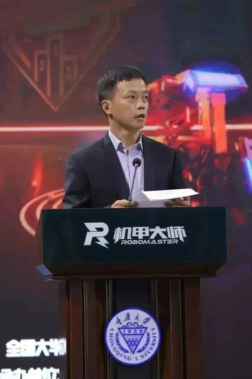 首先,重庆大学本科生院党委书记奉飞发表致辞,代表承办单位,向各校各队表示欢迎,对赛事组织人员和志愿者致以谢意,且高度评价了机甲大师系列赛事育人作用。