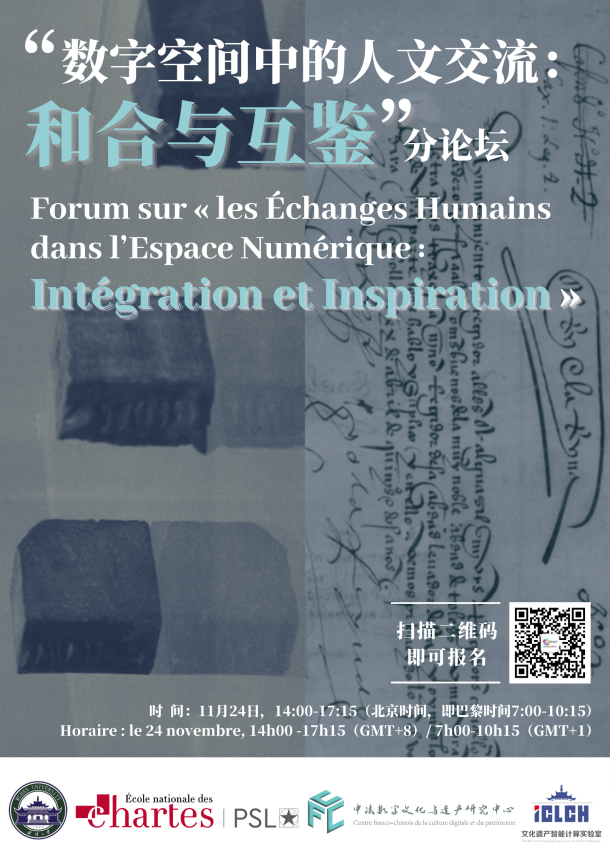 数字空间极大地拓展了各国文化交流的渠道,为促进文化遗产的可持续性保护,实现文明互鉴缔造了新的可能。于是,2022年11月,中法数字文化与遗产研究中心联合法国国立宪章学院、文化遗产智能计算实验室,在第四届“中法非三方高等教育论坛”的框架下举办“数字空间中的人文交流:和合与互鉴”分论坛,继续深耕文化遗产数字化领域的国际交流与合作,获得中法两国文化遗产领域专家学者的广泛好评。