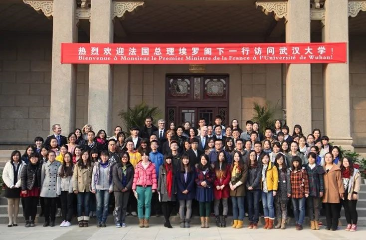 ▲法国时任总理埃罗访问武汉大学(2013年)