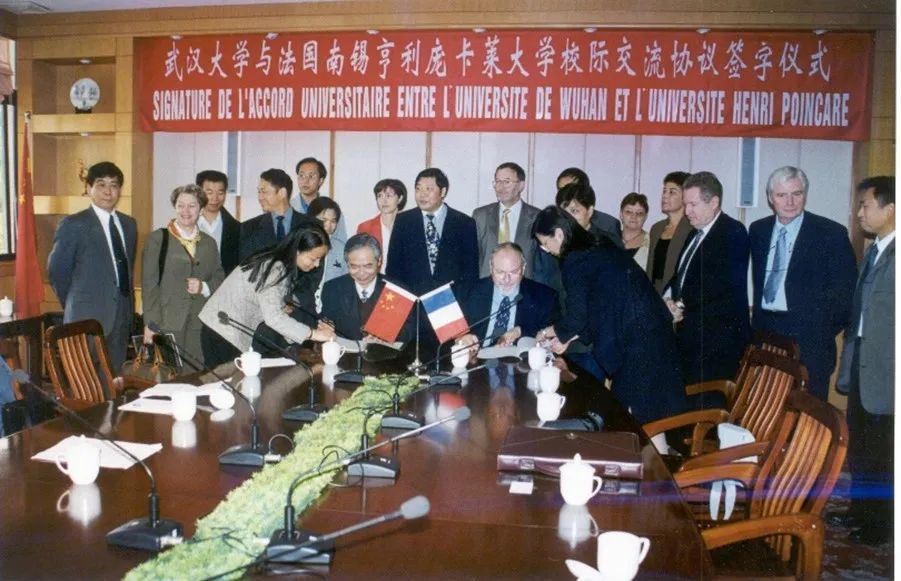 ▲武汉大学与法国南锡亨利•庞卡莱大学签订协议(2000年)