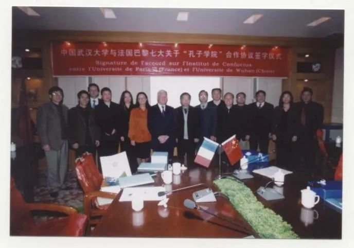▲武汉大学与巴黎第七大学签署创建“孔子学院”协议(2005年)