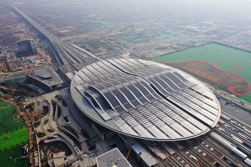 这是在正式投入使用当天拍摄的雄安站(2020年12月27日摄,无人机照片)。