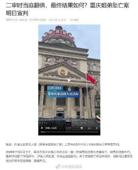 5月11日上午9点30分,张波、叶诚尘故意杀人案(即重庆姐弟坠亡案)二审将公开开庭宣判。