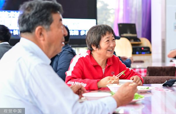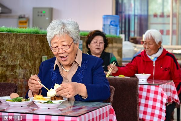 2023年5月11日,内蒙古鄂尔多斯,在伊金霍洛旗王府路社区为老餐厅,老年人享用早餐。