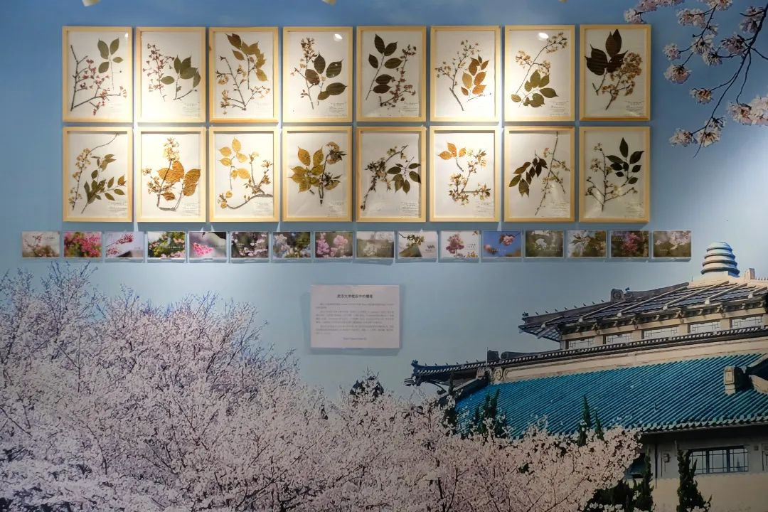 物种的多样性有很多种展现形式,但以樱花一个属一个亚属的角度透视生命的繁荣与多姿,无疑是最“武大”的一种。16份标本姿态各异,交错的花叶与恰到好处的留白呈现出各具特色的艺术感。经过高温与时间的洗礼,制成标本的樱花渐渐褪去颜色,为了更清楚、直观地展现樱花的生态环境以及原有的颜色,汪教授也配上了这16种樱花绽放时的照片。它们共同排布在一整面墙上,静静地留驻春光,成为珞珈山盎然生机的缩影。
