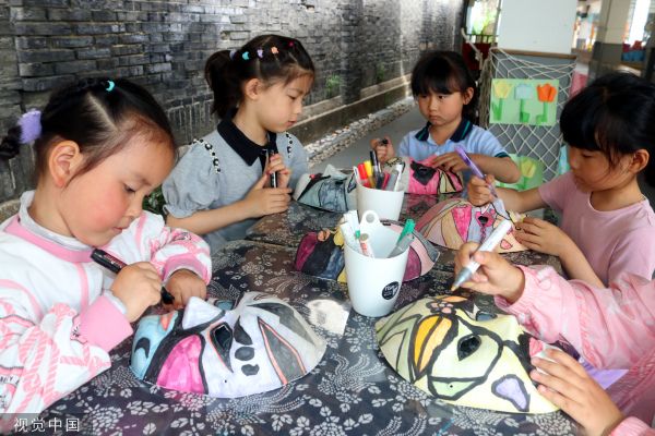 苏州:幼儿园小朋友绘京剧脸谱 了解中华国粹艺术