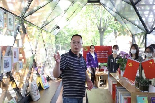 东华大学思政课教师闵绪国教授把思政课从教室搬到了“人人屋”党群服务站,带领同学们一同追随习近平总书记的足迹,开启“行走的课堂”,沉浸式感悟“人民城市”理念。“2019年习近平总书记考察杨浦区滨江公共空间时,曾走进这间小屋,与‘七一勋章’获得者、新中国第一代劳模,也是我们东华校友黄宝妹同志亲切交谈……”“40年前,这里是机器轰鸣、装卸繁忙的大型国企集聚地;20世纪90年代,这里是一家家被废弃的厂房,机器设备锈迹斑斑;如今这里成为网红打卡地,扮靓了城市,造福了人民。”