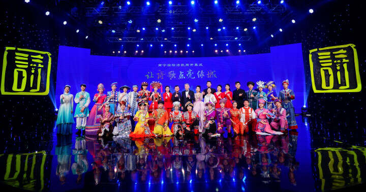 开幕式上,包括配乐诗朗诵、舞蹈、歌舞、器乐演奏等形式的诗歌主题节目演出精彩纷呈。配乐诗朗诵环节,诗人吉狄马加的《感恩大地》、李少君的《敬亭山记》、杨克的《我在一颗石榴里看见了我的祖国》、曹宇翔的《黄河诗篇》、汤养宗的《向两个伟大的时间致敬》、车延高的《向往温暖》、田湘的《大美邕江》等的诗篇与现场的音乐、诵读相融合,更凸显了诗歌的灵动穿透之美。此外,来自俄罗斯、越南、泰国、埃及、老挝、马来西亚、柬埔寨、缅甸等国家的诗人也在开幕式现场朗诵了诗作,用诗歌生动讲述中外友好合作交流的新时代故事。