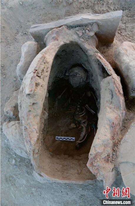 2018年贝什肯特墓地发现的瓮棺葬。王建新 供图