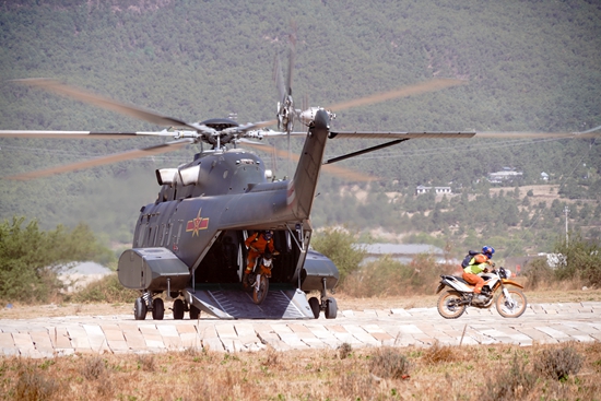 由于直升机并无摩托车固定装载模式,在演习前机组人员与地方救援力量进行了反复讨论、地面模拟、空中试飞,确保救援人员和装备安全抵达。