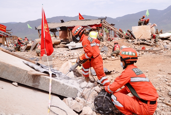 紧接着,西南方向地震灾害紧急救援队、武警云南总队机动某支队等数百名官兵火速驰援,从“孤岛”两侧有序突入,挺进“震中”。