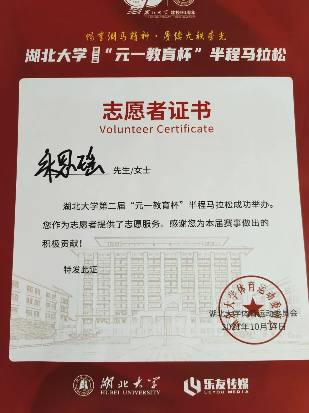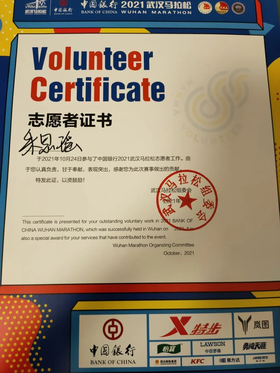汉马中,武汉这座城市和武汉人体现出的的青春活力,让朱思瑶不禁感叹:“这次的志愿活动是一次前所未有的体验!”在她众多志愿服务经历中,添上了浓墨重彩的一笔!