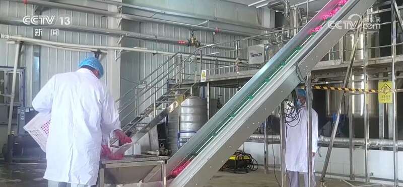 随后,玫瑰花瓣会被放入一台台蒸馏釜里提取纯露和精油。此外,玫瑰花通过粉碎、搅拌、罐装、发酵等工序后,还可以加工成玫瑰花酱。随着当地玫瑰花产业的不断发展,越来越多的村民也主动进入加工厂工作,获得了稳定的收入来源。