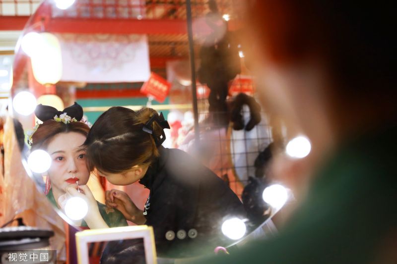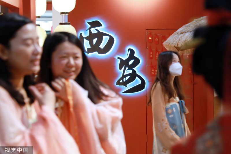 遇见霓裳汉服体验馆的店主周薇又将迎来繁忙的工作。她的汉服体验馆就位于大唐不夜城。“从春节开始,‘汉服体验’的热度就一直在持续。西安丰富的历史文化资源为游客提供了浓重的‘穿越’氛围,当代年轻人对传统文化的喜爱也在持续升温。”周薇说。