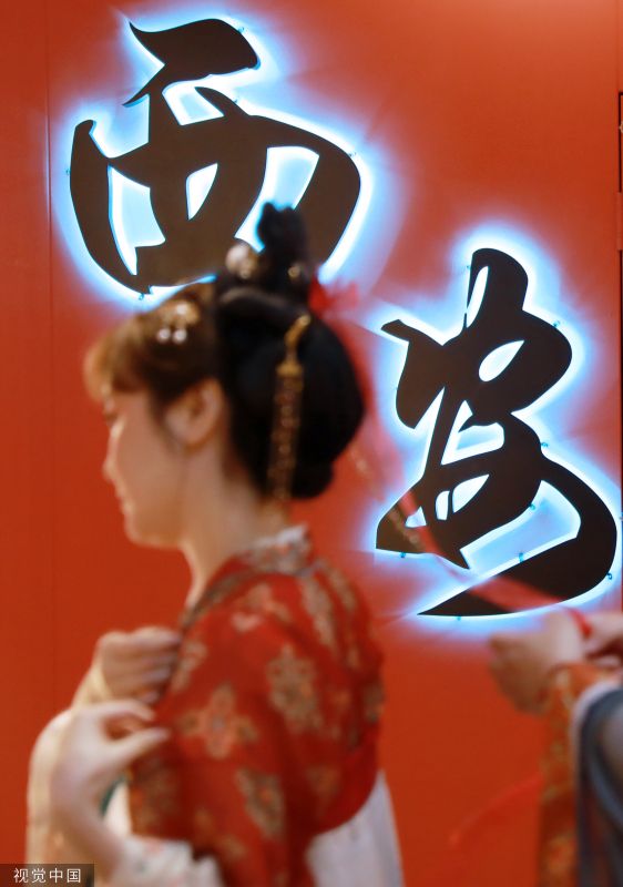 如今走在西安街头,大唐不夜城、大唐芙蓉园、长安十二时辰、城墙,甚至在地铁上,看到身着汉服的俊男靓女都不足为奇。“簪发持扇着汉服”成为越来越多年轻人的选择,一名或一群身穿汉服的男男女女,踏着优雅、细碎的步伐路过时,一种穿越历史之感油然而生。衣袂飘飘的华服,与古色古香的建筑相得益彰,“穿华服,游西安”成为时下潮流。