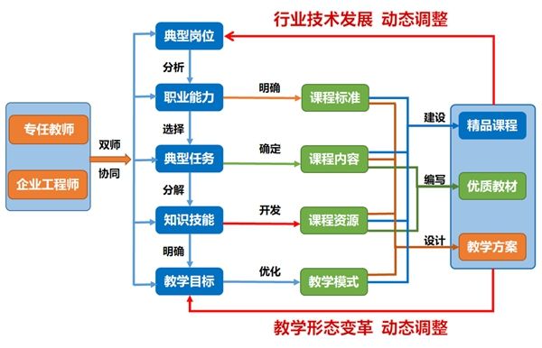 三是“岗课赛证”融通,构建专业群“平台+模块”课程模组新形态。在专业群建设中充分融合典型岗位(群)、职业能力、证书与赛项、课程模块、资源与教法等要素,对接产业发展需求开展“平台+模块”的课程体系改革,打造专业群开放共享的优质课程资源。