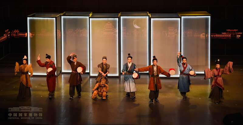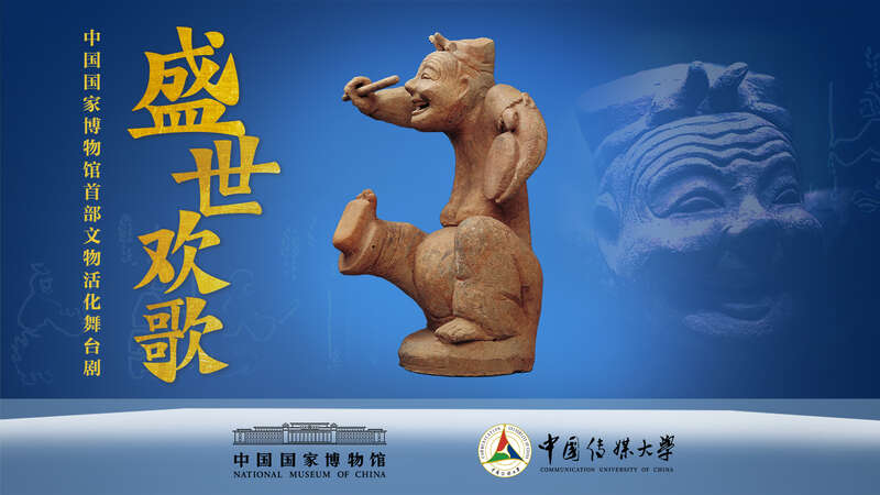 中国国家博物馆联合中国传媒大学共同出品的首部原创文物活化舞台剧《盛世欢歌》,将传统的杂耍、说唱、戏曲等表演艺术,与现代话剧、歌剧、音乐、舞蹈、相声、说唱等艺术融合,将东汉说唱艺术中的诙谐和其蕴含的乐观精神,通过年轻演员传承、复活、展现给观众。