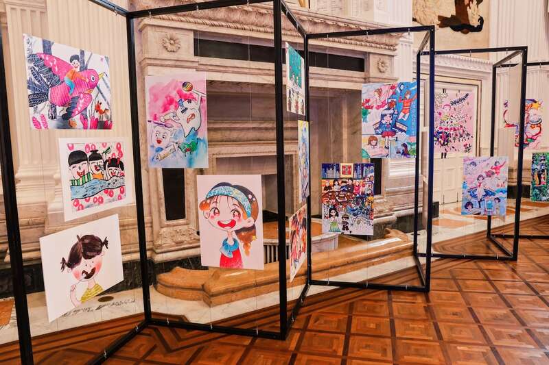 舞台另一侧的“民警子女”优秀绘画征文作品展区吸引了不少孩子和家长驻足。“我的爸爸是警察,他守护着城市安全,是我心中的英雄”,“我画的是一只小鸟停在站岗的特警叔叔肩头,那里肯定是全世界最安全的地方”……小作者们自豪地介绍起获奖作品。