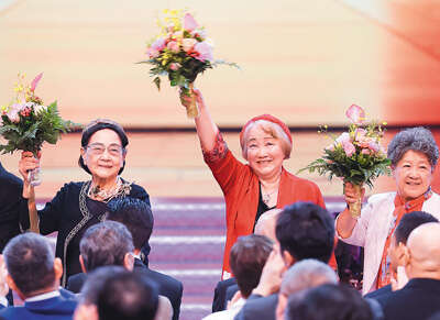 老电影艺术家在颁奖典礼上。从右至左:陶玉玲、祝希娟、王晓棠。